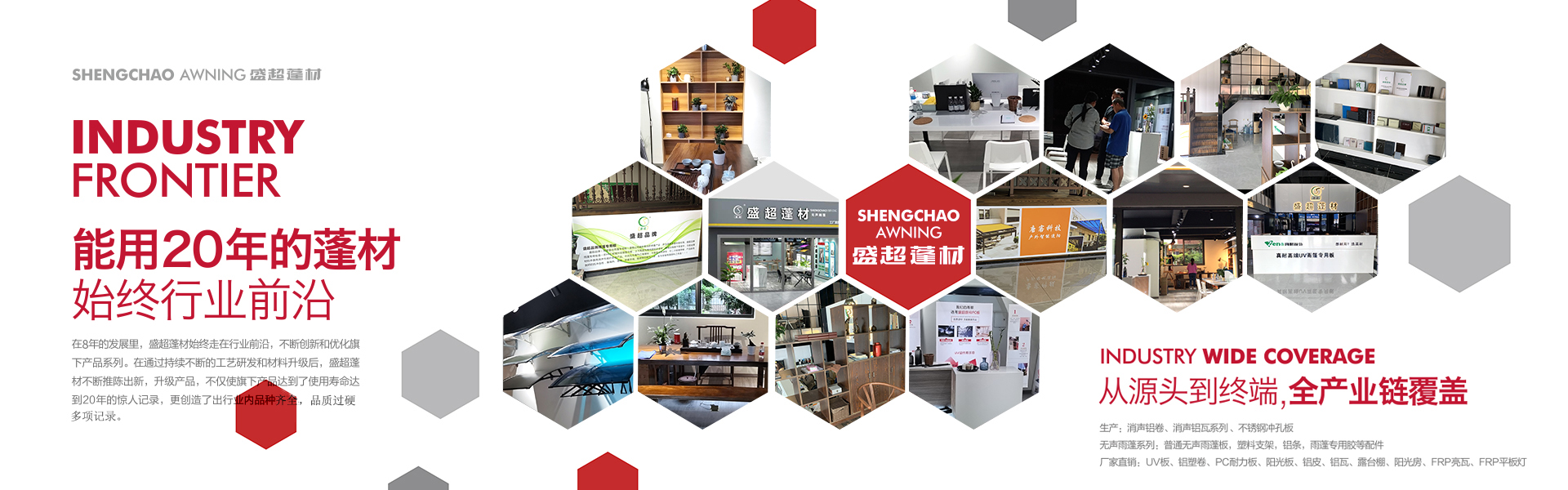 盛超蓬材是由四川超諾商貿有限公司創辦,是一家集研發、生產、銷售和服務于一體的專業雨蓬供應商。主要產品:實心耐力板,中空陽光板、多層板、蜂窩板、鋁瓦、消聲鋁瓦、不銹鋼消聲等材料的雨蓬產品。自主研發多款雨蓬,擁有自己的專利和檢測報告。其中明星產品新型組裝式雨蓬,擁有組裝簡便,美觀耐用、抗噪音,性價比高等優勢,多項檢測指標領跑同行業。受到了市場和經銷商的高度認可。 公司自成立至今,從銷售到研發再到生產,已經過了3次跨越式的發展。2017年已成為四川雨蓬行業內庫房面積大,員工多的一家公司。產值每年以平均20%的速度快速增長。可以說客戶是我們的老師,和他們合作使我們得到很多的學習機會來提高自身的技術水平和管理水平,是我們生產和發展的動力。